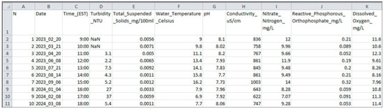 - Ecology Lab, University of Waterloo. Physical, Chemical and Biological Water Quality Measurements Carried Out over 1 Week, 3 Times a Year at Various Locations on Laurel Creek on the University of Waterloo Campus. Borealis 2022, V4. Available online: https://borealisdata.ca/dataset.xhtml?persistentId=doi:10.5683/SP3/OUWVZ3 (accessed on 7 September 2024). [CrossRef]