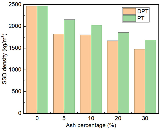 Water absorption, bulk density, and SSD were analyzed according to ASTM 373-88 and loss on ignition (LOI) was calculated according to ASTM C326 standard by using Equation (1).