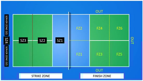 The analysis in this research focused on the points played during the examined pickleball matches. Specifically, data were collected from five tournaments (Las Vegas, Cincinnati, Kansas, Seattle, and Denver), resulting in the evaluation of 15 matches and a total of 1145 points. A total of 17 different players were observed across the analyzed tournaments, as some players reached the semifinals multiple times. The participants included professional players who had advanced to at least the semifinal stage in these events, representing a high level of expertise in the sport. These elite players were selected based on their performance in the professional circuit, ensuring that the analysis captured high-quality and competitive gameplay. As the study relied on publicly available match footage and did not involve experimental procedures, obtaining informed consent was deemed unnecessary [22]. Ethical approval was granted by the Ethics Committee of the Faculty of Education and Sport Sciences at the University of Vigo (application 07-280722).