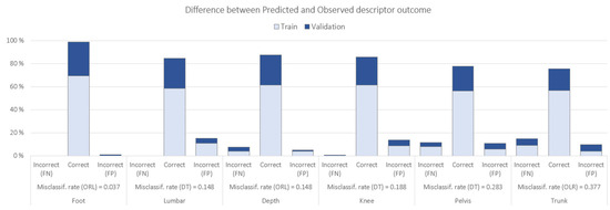 The models with the best/lowest misclassification rate for each descriptor as a target and the difference between predicted and observed ‘grade’ based on biomechanical data are shown in Figure 6.