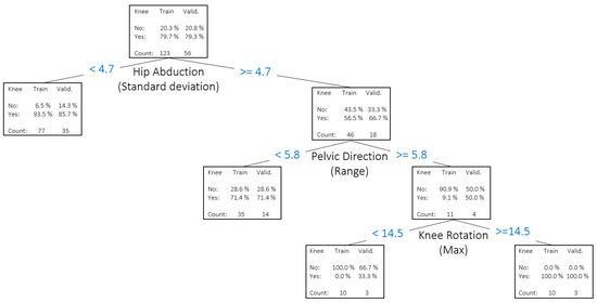 Decision tree for the descriptor ’knee’ and biomechanical data as input variables.