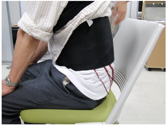 In addition to the soles of the feet, standing balance is also significantly affected by the movement of the center of gravity, which is present in the trunk (in the region of the pelvis) when standing [17]. For this reason, a number of studies have focused on the effects of trunk function on sitting and standing balance [18,19,20]. Just as foot sole sensation is an important element in standing balance, it may also be conjectured that the tactile sensation of the trunk would be important in standing balance. However, virtually no studies of the effects of tactile sensation of the trunk on standing balance have been performed.