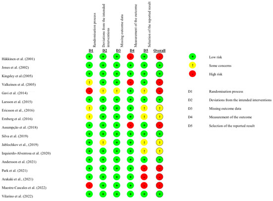 Risk of bias assessment for parallel design studies using the Cochrane RoB 2 tool.
