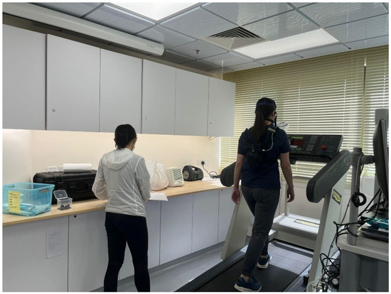 All participants completed a familiarization session one week prior to the study, during which they practiced using the mouthpiece and a Hans Rudolph valve to reduce measurement errors. A standardized mouthpiece was used for all participants, and they received feedback and instructions during the trial. Participants were required to attend two sessions at the university laboratory with a gap of 2–7 days between sessions. The laboratory temperature and humidity were recorded during each visit. During the first visit, resting heart rate (HR), blood pressure (BP), body mass (kg), and height (cm) measurements were taken. Subsequently, participants completed a 28 min walking protocol on a treadmill while wearing the portable cardiometabolic device. Proper fitting of the metabolic equipment was confirmed by closing the valve of the mask and checking for air leakage through maximal expiration before each test. The fit was continuously monitored during breath-by-breath measurements to ensure there was no lifting of the mask indication of leakage.