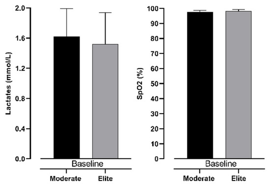 Differences between intermediate and elite freedivers in lactate levels and SpO2 in baseline measurement.