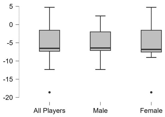 Table tennis is a globally recognized Olympic sport, practiced by millions of competitive and non-competitive players around the world [,,]. This sport has undergone numerous rule changes in recent years, including the introduction of the plastic ball, an increase in the ball’s diameter and weight, a new 11-point scoring system, speed glue prohibition, and restrictions on service techniques, along with others []. The aforementioned modifications have significantly changed fundamental aspects of table tennis, including physiological and metabolic demands, game structure, and physical requirements, which differ considerably from those observed in matches played years ago [,]. As a result, the game may evolve differently depending on whether it is played by one gender or another. Despite table tennis’ immense popularity, long history, and major regulatory and gameplay changes, there remains a notable lack of scientific studies investigating this sport, particularly in relation to both genders [].