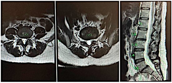 After 24 months, the patient returned to our clinic with a mild recurrence of pain, localized to the gluteal region without any radiation. Regardless, she still continued to engage in her usual sports activities without claudication or limitations. A new MRI (Figure 2) revealed a significant improvement compared to the previous scan, showing the L5-S1 disc in better condition, though some early signs of degeneration were present in the L4-5 intervertebral disc. While this type of imaging progression is expected due to the natural course of the disease, it is noteworthy that she remained symptom-free and clinically stable for an extended period.