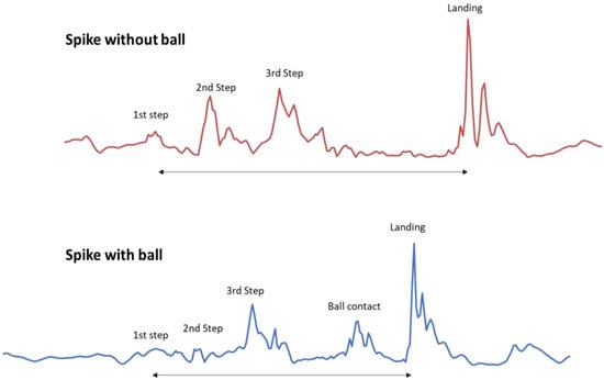 - Fuchs, P.X.; Fusco, A.; Bell, J.W.; von Duvillard, S.P.; Cortis, C.; Wagner, H. Movement Characteristics of Volleyball Spike Jump Performance in Females. J. Sci. Med. Sport 2019, 22, 833–837. [Google Scholar] [CrossRef]