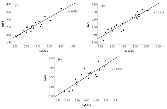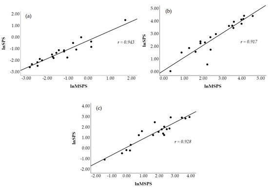 | lnSD2 | −0.85 | <0.001 | Very large | −0.92 | <0.001 | Nearly Perfect | −0.79 | <0.001 | Very Large | −0.94 | <0.001 | Nearly Perfect |