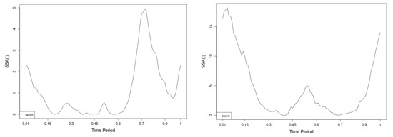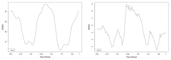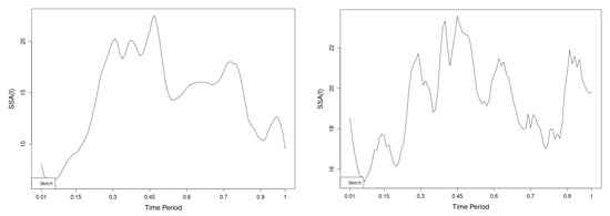 The pointwise F-type test tends to be time-consuming, and it does not guarantee that the null hypothesis is significant overall at a given significance level, even if the pointwise F-type test is significant for all t ∈ [0, 1] at the same significance level [49] Due to, the pointwise function has to be integrated in aim to obtain an estimate for overall difference. The basic statistic in this case is obtained from SSA(t) as: