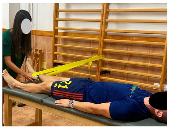 - Ceballos-Laita, L.; Carrasco-Uribarren, A.; Cabanillas-Barea, S.; Pérez-Guillén, S.; Medrano-De-La-Fuente, R.; Hernando-Garijo, I.; Jiménez-Del-Barrio, S. Relationship between Hip Abductor Muscle Strength and Frontal Plane Kinematics: A Cross-Sectional Study in Elite Handball Athletes. Appl. Sci. 2022, 12, 10044. [Google Scholar] [CrossRef]