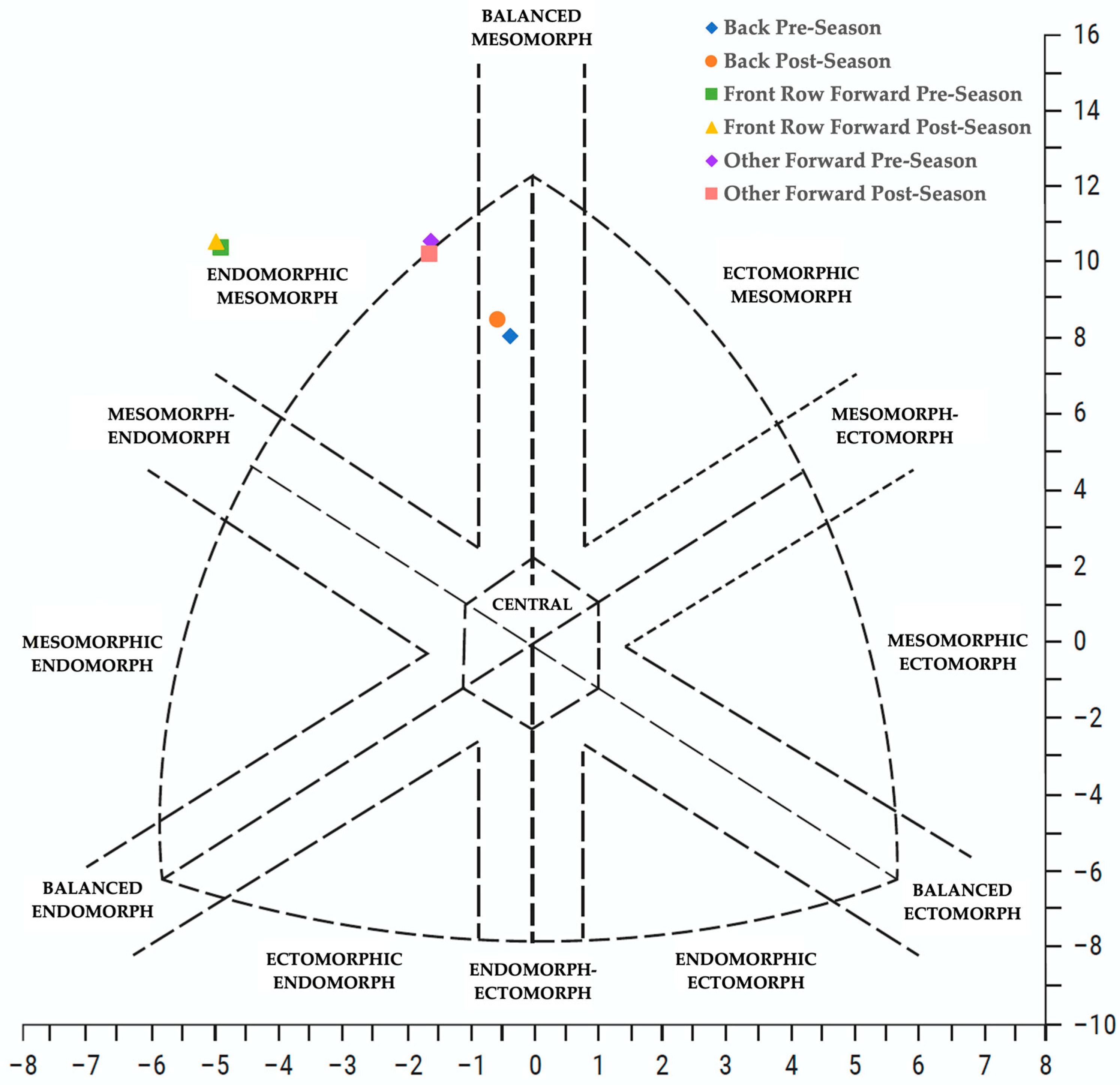 - Morehen, J.C.; Routledge, H.E.; Twist, C.; Morton, J.P.; Close, G.L. Position specific differences in the anthropometric characteristics of elite European super league rugby players. Eur. J. Sport. Sci. 2015, 15, 523–529. [Google Scholar] [CrossRef]