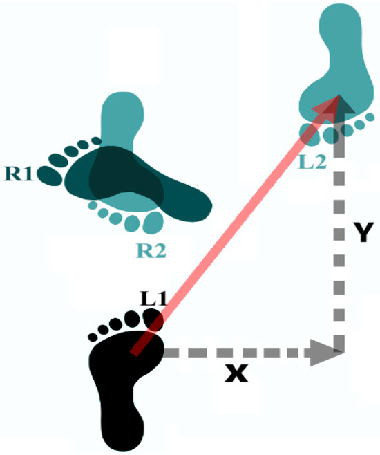 Figure 2 provides a representative example of foot displacement during the turning phase, highlighting the trigonometric methodology.