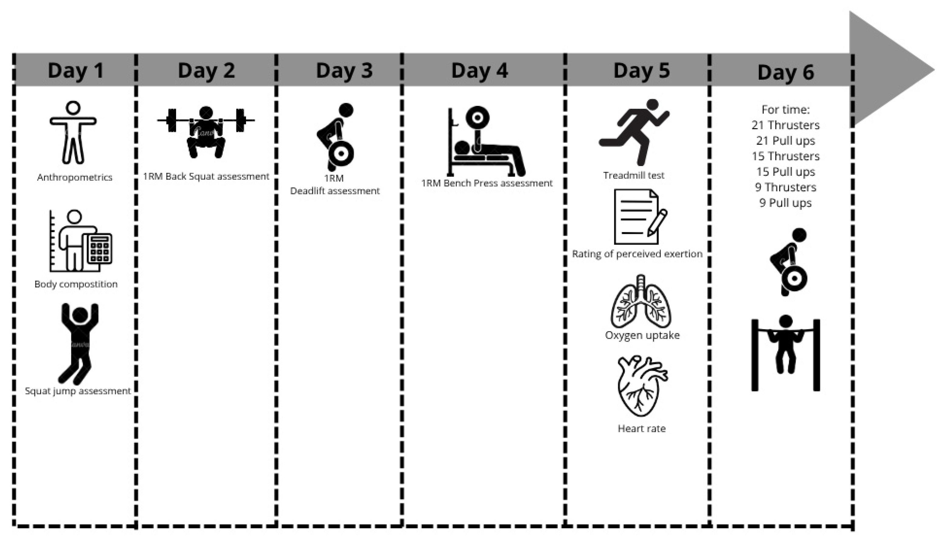 - Dexheimer, J.D.; Schroeder, E.T.; Sawyer, B.J.; Pettitt, R.W.; Aguinaldo, A.L.; Torrence, W.A. Physiological Performance Measures as Indicators of CrossFit® Performance. Sports 2019, 7, 93. [Google Scholar] [CrossRef]
