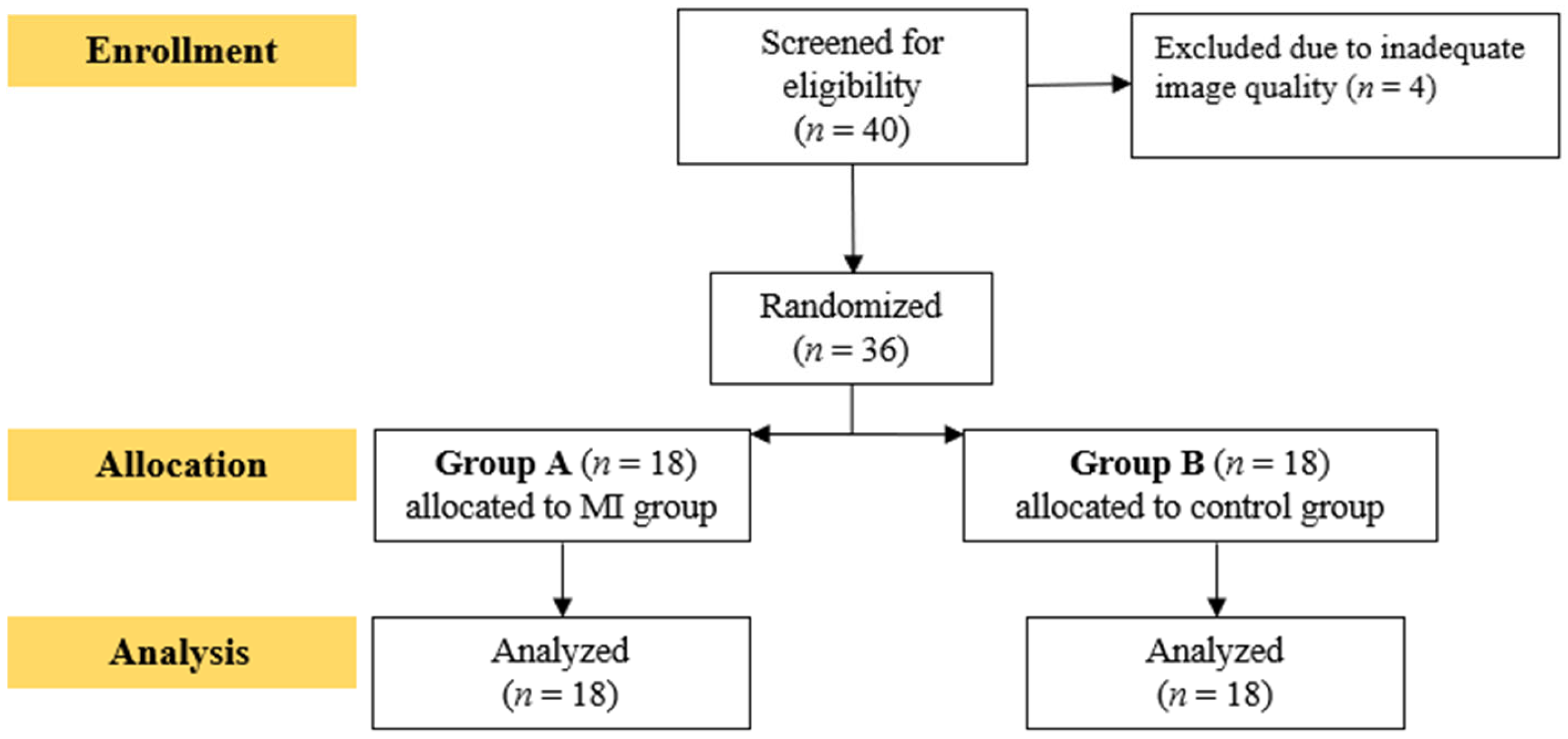 MI Group (nA = 18) | Healthy Controls (nB = 18) | Effect Size (Cohen’s d) | p-Value | |