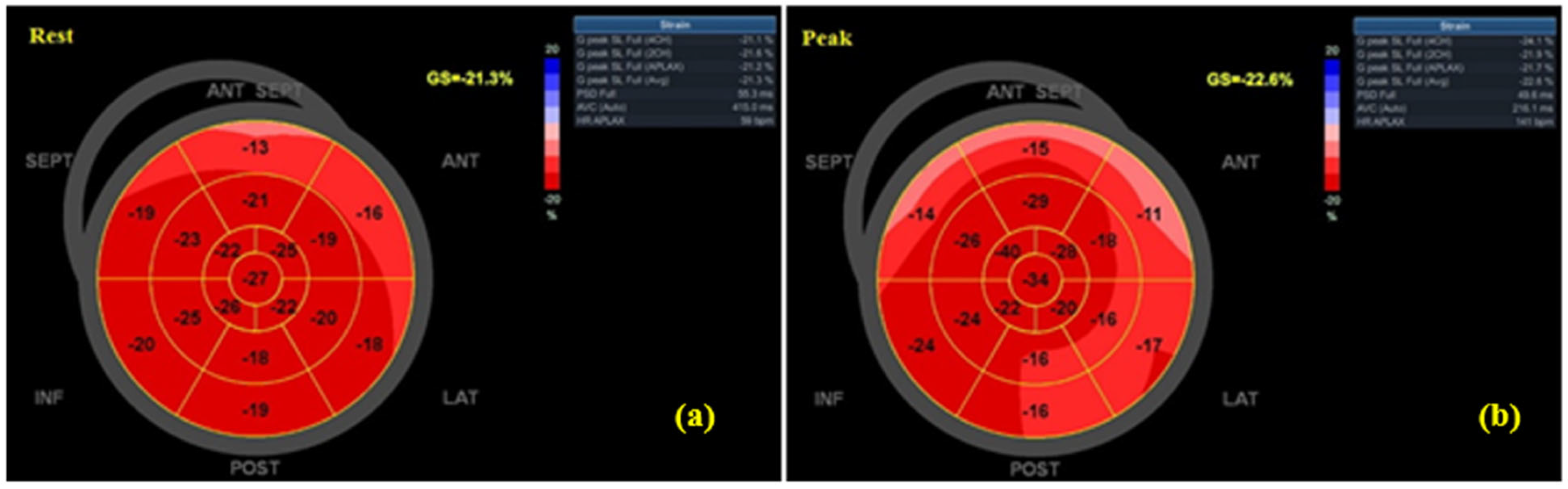 GLS rest (%) | −14.70 ± 3.81 | −20.22 ± 1.45 | 0.72 | p = 0.003 |