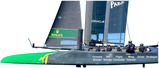 These risks are amplified by a large crew size, with teams typically consisting of six sailors, five males and one female. The six sailors on board have distinct roles: two grinders (forward and aft) power the boat’s hydraulics, the flight controller manages the hydrofoils’ angle of attack to control ride height, the wing trimmer adjusts the boat’s wing to optimize speed, the driver steers via the rudders and the strategist provides tactical input during the race [4]. In addition, each position has their own unique movement patterns. Strategists often transition before a manoeuvre, ensuring a sailor is available to steer the vessel after a manoeuvre. Wing trimmers and grinders follow quickly after to re-establish F50 power and trim. Finally, after the manoeuvre is complete, the driver transitions when the boat is moving in a straight line.