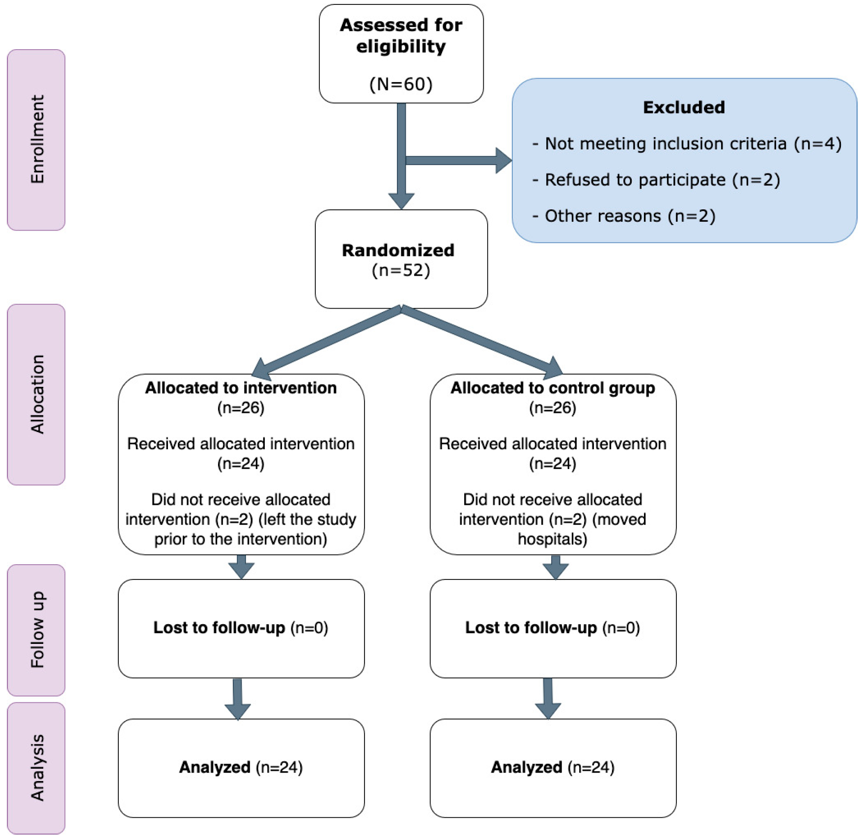 | Characteristics | Intervention Group (n = 24) | Control Group (n = 24) |