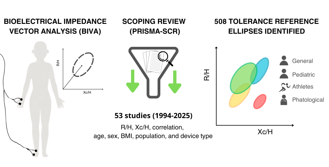 Serafini S, Mascherini G, Vaquero-Cristóbal R, Esparza-Ros F, Campa F, Izzicupo P. Reference Tolerance Ellipses in Bioelectrical Impedance Vector Analysis Across General, Pediatric, Pathological, and Athletic Populations: A Scoping Review. Journal of Functional Morphology and Kinesiology. 2025; 10(4):415. https://doi.org/10.3390/jfmk10040415