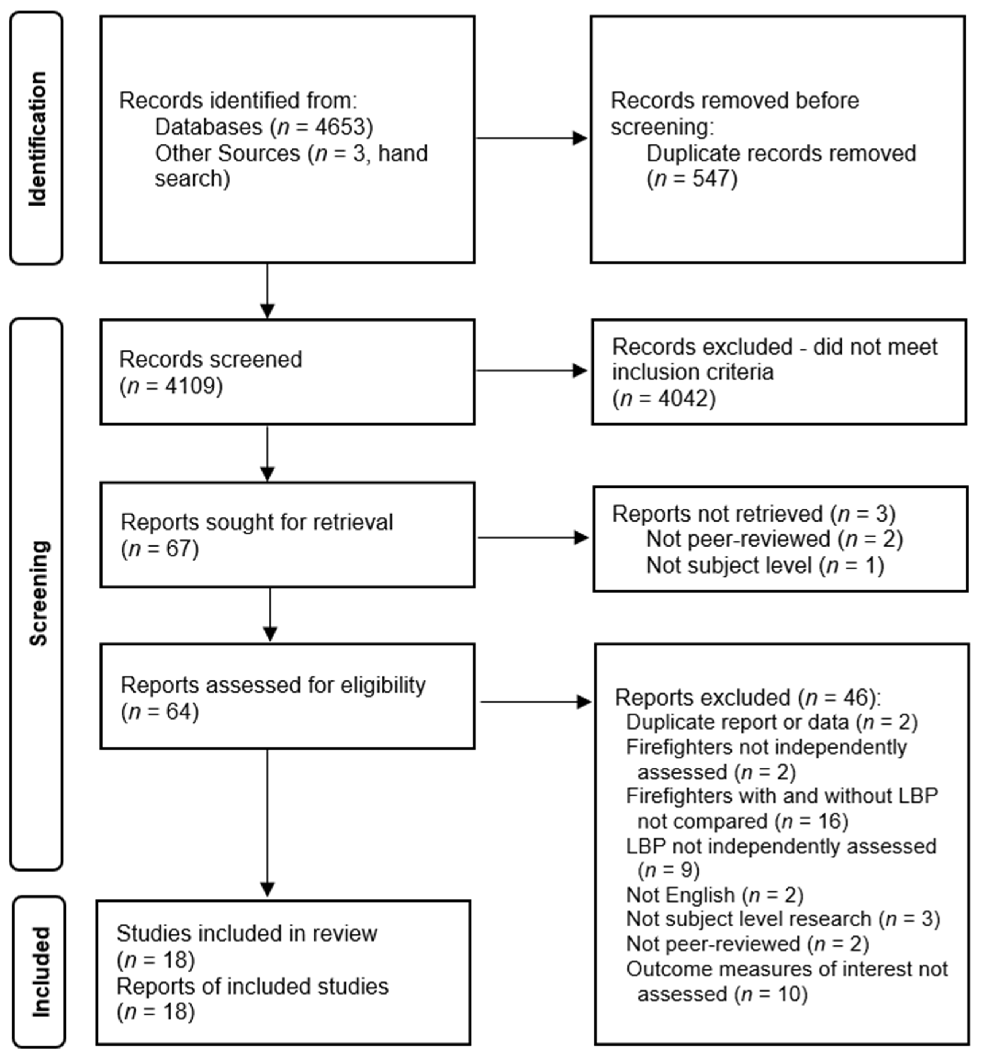 APA StyleMayer, J. M., Botros, M., Grace, E., & Haddas, R. (2025). Functional Biomarkers Associated with Risk of Low Back Pain in Firefighters: A Systematic Review. Journal of Functional Morphology and Kinesiology, 10(4), 441. https://doi.org/10.3390/jfmk10040441