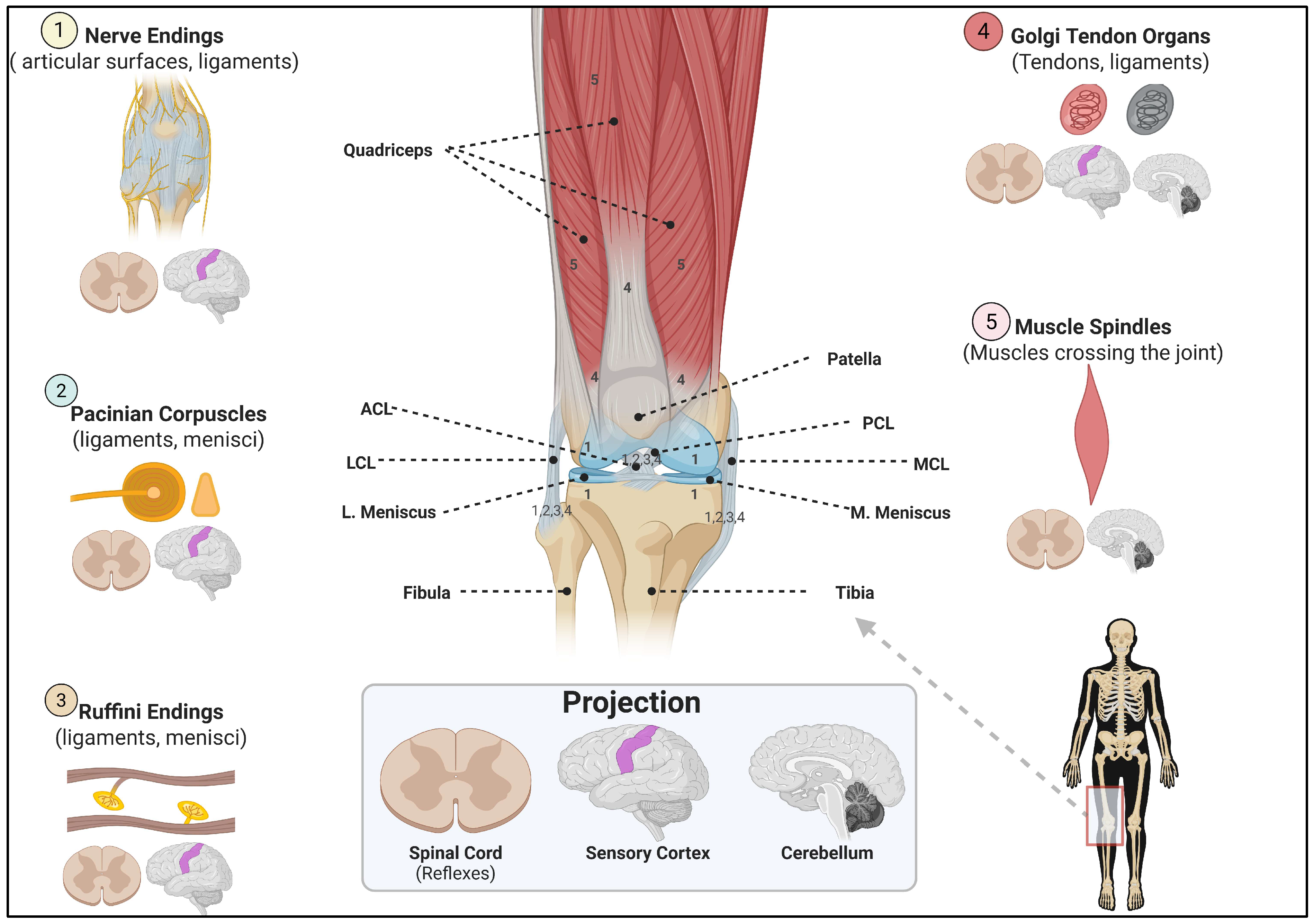 - Çabuk, H.; Kuşku Çabuk, F. Mechanoreceptors of the ligaments and tendons around the knee. Clin. Anat. 2016, 29, 789–795. [Google Scholar] [CrossRef]