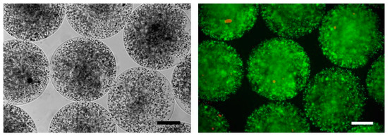 Alginate is totally biocompatible and can exist in the form of a hydrogel. Different bivalent cations that bind alginate might be used to obtain the gel, with barium being the most used since it forms stronger gels with reduced permeability due to its high affinity to alginate [108,109]. The ability of alginate to chelate bivalent cations is linked to the G/M ratio. High G/M ratios lead to zig-zag structures that allow cations to insert inside perfect niches resulting in a more stable bond of alginate with cations, higher resistance, unvarying porosity and long-lasting durability. Ions belonging to the second group of the Mendeleev’s periodic table share the ability to ligate alginate. Barium alginate microcapsules are mechanically stable and easy to obtain, with a procedure that is substantially independent of the type of cells to be encapsulated [101,110].