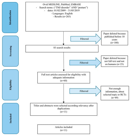 Sambataro, S.; Cervino, G.; Bocchieri, S.; La Bruna, R.; Cicciù, M. TMJ Dysfunctions Systemic Implications and Postural Assessments: A Review of Recent Literature. J. Funct. Morphol. Kinesiol. 2019, 4, 58. https://doi.org/10.3390/jfmk4030058