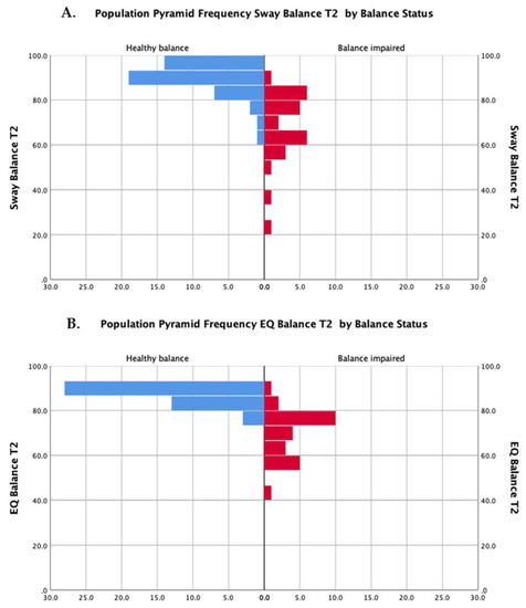 A post-hoc analysis was conducted to investigate the difference in balance performance, as measured with EQ Balance, between healthy and balance-impaired cohorts. A Mann–Whitney test was used as a non-parametric test to compare balance performance based on balance injury status (i.e., healthy vs. impaired balance). This analysis was completed with IBM SPSS Statistics Subscription 1.0.0.1072.