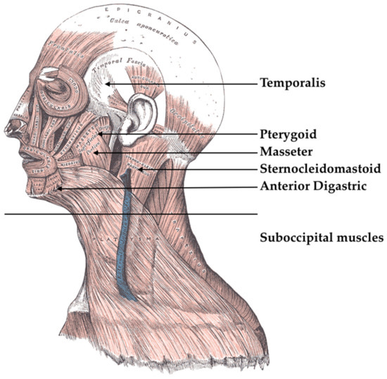 - De Rossi, S.S.; Stern, I.; Sollecito, T.P. Disorders of the masticatory muscles. Dent. Clin. N. Am. 2013, 57, 449–464. [Google Scholar] [CrossRef]