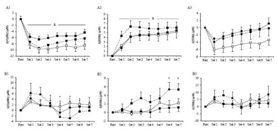 - Zafeiridis, A.; Kounoupis, A.; Dipla, K.; Kyparos, A.; Nikolaidis, M.G.; Smilios, I.; Vrabas, I.S. Oxygen Delivery and Muscle Deoxygenation during Continuous, Long- and Short-Interval Exercise. Int. J. Sports Med. 2015, 36, 872–880. [Google Scholar] [CrossRef] [PubMed]