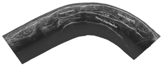 - Sahinis, C.; Kellis, E.; Ellinoudis, A.; Dafkou, K. In Vivo Assessment of the Tensor Vastus Intermedius Cross-sectional Area Using Ultrasonography. Muscle Ligaments Tendons J. 2020, 10, 416. [Google Scholar] [CrossRef]