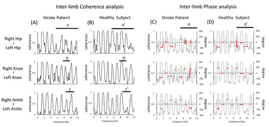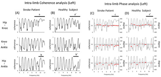 3.2. Intra-Limb Coherence Analysis and Phase Analysis (Left Limbs)