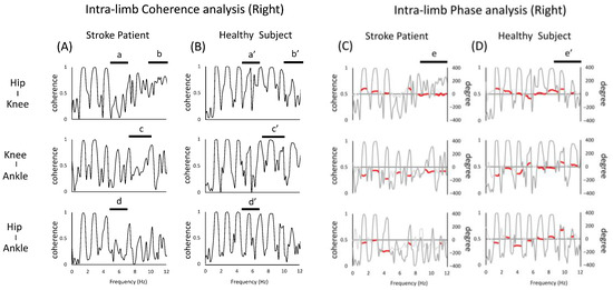 3.3. Intra-Limb Coherence Analysis and Phase Analysis (Right Limbs)