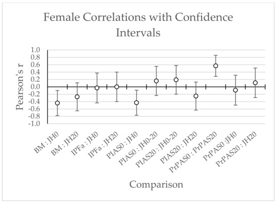 | Females (n = 24) | Jump Height 0 kg: PIAS0 | −0.43 [−0.71, −0.03] | 0.19 | 0.03 * |