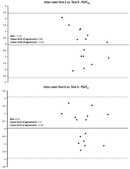 | Interrater Test2 vs. Test3—PSJTRLEG | (1,13) = 319.17 | <0.001 | 0.958 |