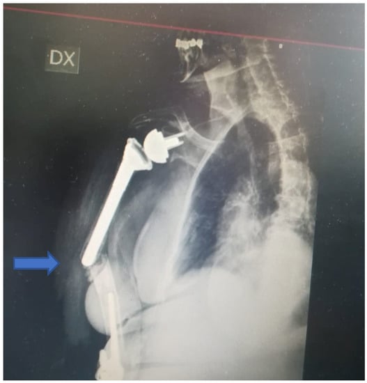 - Mavrogenis, A.F.; Angelini, A.; Guerra, E.; Rotini, R. Humeral fracture between a total elbow and total shoulder arthroplasty. Orthopedics 2011, 11, 34. [Google Scholar] [CrossRef]