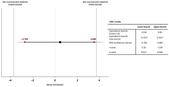 - Lakens, D. Equivalence Tests: A Practical Primer for t Tests, Correlations, and Meta-Analyses. Soc. Psychol. Personal. Sci. 2017, 8, 355–362. [Google Scholar] [CrossRef]