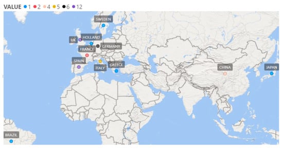 A total of 40 articles were identified in the review, after applying the proposed inclusion/exclusion criteria. In total, 29 of the 40 articles used classical inductive statistics alone or in combination with other methods (e.g., visualization), 10 used AI methods alone or in combination with other methods (e.g., visualization), and one study combined classical statistics with A.I. and observational methodology (Table 1). Table 1 also shows that 24 surveys used performance indicators from event data, eight used tracking data, while the rest used other types of data (flow motifs, team possessions, questionnaires, etc.). In the same table it can be seen that the sample was usually taken from country leagues (mainly the big four European i.e., English, Spanish, German, Italian) and the World Cup. The map in Figure 2 illustrates the domestic competitions that have been included in the relevant surveys.