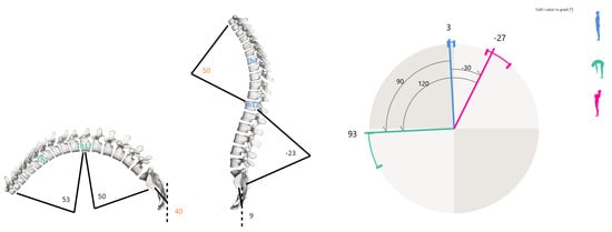 - Porto, A.B.; Okazaki, V.H.A. Thoracic Kyphosis and Lumbar Lordosis Assessment by Radiography and Photogrammetry: A Review of Normative Values and Reliability. J. Manip. Physiol. Ther. 2018, 41, 712–723. [Google Scholar] [CrossRef] [PubMed]