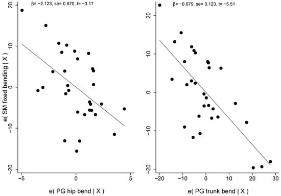 | PG trunk bend | −0.678946 | 0.1232905 | −5.51 | <0.001 | −0.931495 | −0.426397 | |||