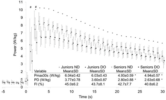 Bilateral power data measured by Favero Assioma Duo power meter (Favero Electronics, srl., Arcade, TV, Italy) at 1 Hz was used to evaluate Pmax5s, Pmax30s, Pmin5s, PD, and FI values for ND and DO leg according to formulae presented previously.