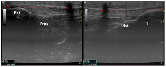 To evaluate PT measurements, we chose ultrasonography because it is an imaging technique that makes it possible to characterize and assess the PT at a low cost, it is non-invasive, it has no ionizing radiation, it is portable, and it is available. On the other hand, it has high spatial resolution due to the high-frequency transducer and allows for a contralateral comparison.