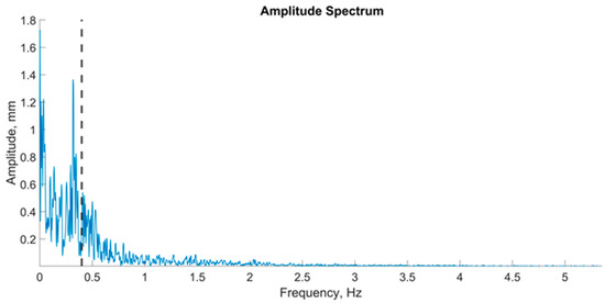 An example of a graph of the amplitude spectrum center of pressure oscillations in the frontal plane; the vertical dashed line on the graph is an indicator of 60% of the spectrum power.