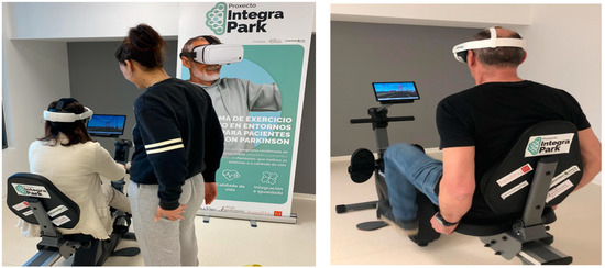 Although there are studies that have analyzed the influence of IVR on different parameters in people with PD, such as tasks with dual-task components [22], balance and gait [34], or the work of cycling and dual-task completion [35], there are no studies that have analyzed the effects of high-intensity cycling and rowing training within an IVR environment in patients with Parkinson’s disease, which is what has been developed in the IntegraPark project. It is intended, on the one hand, to take into account the benefits from high-intensity exercise in this type of patient [16] and, on the other, its safe performance (a greater control over the high-intensity exercise to be performed with a minimal possibility of a fall occurring) and promote adherence to the treatment (previous experiences with this type of patient confirms this, as it motivates them and makes exercise more enjoyable [17,18]).