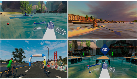 On the other hand, new technologies, such as immersive virtual reality (IVR), have been incorporated as an innovative approach to carrying out physical and cognitive therapy in various pathologies, including PD [17,18]. IVR is a technology that creates a computer-generated artificial environment that can be easily configured for therapeutic purposes [19]. This technology allows patients to focus easily on therapy without external interferences [20]. IVR exergames, which integrate games with exercise, can offer a more engaging and interactive approach to physical fitness [21,22]. The virtual reality environment allows for a wide range of virtual activities, including sports, dance, and adventure games [23]. This variety helps overcome user boredom and maintain motivation, leading to a greater adherence to physical activity. Moreover, the use of games in non-gaming contexts is a phenomenon that has been gaining attention in various areas, especially in rehabilitation settings [24]. As the technology improves, these virtual experiences become more realistic, enhancing a sense of presence, and allowing for an approximation of the specific tasks, movements, or sports modalities that have been adapted for the patient’s context [25]. Some sports modalities based on cycling [26] or rowing [27] have shown potential benefits for the health of people living with PD. However, practicing these modalities is not without risk, so their practice in controlled environments such as virtual ones could help to minimize the occurrence of accidents, in particular, falls [28], in addition to encouraging a high-intensity performance [29] that maximizes the impact of this TE on the therapeutic targets responsible for dopaminergic loss [30].