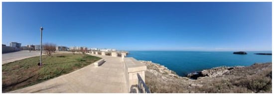 The OUTC condition was performed by cycling outside on an outdoor bike pathway (Figure 2). Each participant cycled for 10 min at a predetermined speed of 14.5 km/h. The OUTC condition was performed on a regular muscular city bike, and participants were instructed to maintain the established speed, which was displayed in real time through a cyclo-computer (Garmin®, Edge 540; Garmin Ltd., Olathe, KS, USA) [42]. The ERC condition was performed on a stationary bike (Technogym®, smart bike; Technogym S.p.A, Cesena, Italia) at 14.5 km/h speed, equipped with a monitor (22″ full-HD touchscreen) that reproduces a natural landscape in first person. During the cycling experience, the surrounding landscape adapts to the speed in real time. The same resistance level was set for all three conditions (VRC, OUTC, and ERC) to ensure consistency in the physical effort required across different cycling modalities.
