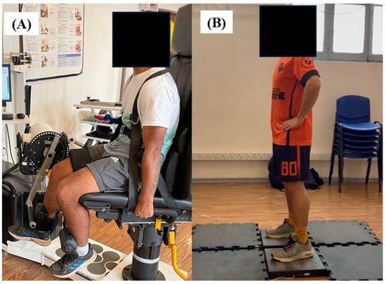 Start position in isometric knee extension (A) and countermovement jump (B).