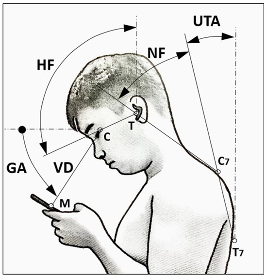 - Sarraf, F.; Valmeyer, S. Comparing the effect of the posture of using smartphones on head and neck angles among college students. Ergonomics 2022, 65, 1631–1638. [Google Scholar] [CrossRef]