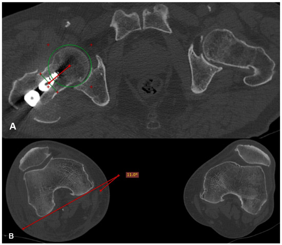 - Ramanoudjame, M.; Guillon, P.; Dauzac, C.; Meunier, C.; Carcopino, J.M. CT evaluation of torsional malalignment after intertrochanteric fracture fixation. Orthop. Traumatol. Surg. Res. 2010, 96, 844–848. [Google Scholar] [CrossRef]