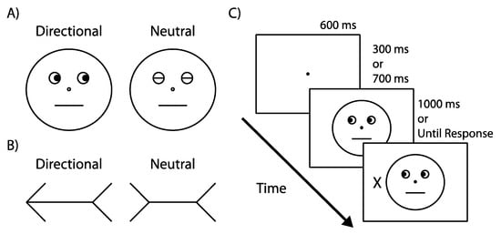 - Frischen, A.; Bayliss, A.P.; Tipper, S.P. Gaze cueing of attention: Visual attention, social cognition, and individual differences. Psychol. Bull. 2007, 133, 694–724. [Google Scholar] [CrossRef] [PubMed]
